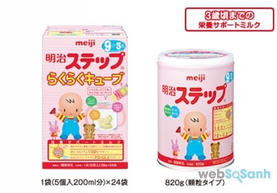 Sữa bột Meiji có hai dạng đóng gói: dạng bột và dạng thanh
