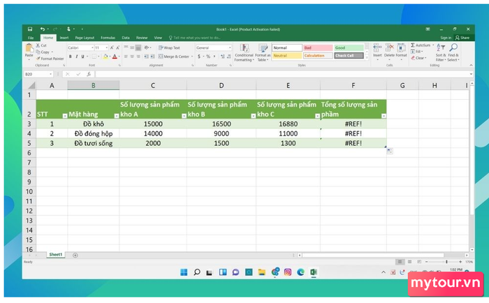Trong trường hợp xuất hiện lỗi #REF!, so sánh hai file và điều chỉnh dữ liệu. Kết quả chính xác sẽ hiển thị trên bảng Excel.