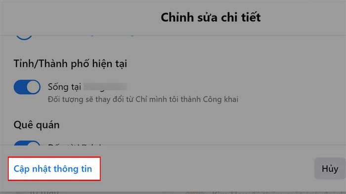 Bước 3: Kích vào biểu tượng cây bút bên cạnh thông tin cá nhân bạn muốn giấu.