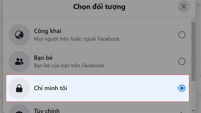 - Chọn Tùy chỉnh riêng tư: Chỉ mình tôi.