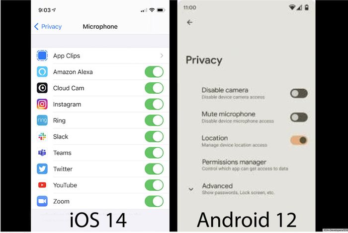 Theo những hình ảnh rò rỉ, trên thanh thông báo của Android 12 sẽ bắt đầu hiển thị chấm nhỏ thông báo micro hoặc camera đang hoạt động, nhằm tránh tình trạng bị theo dõi mà không hay biết.