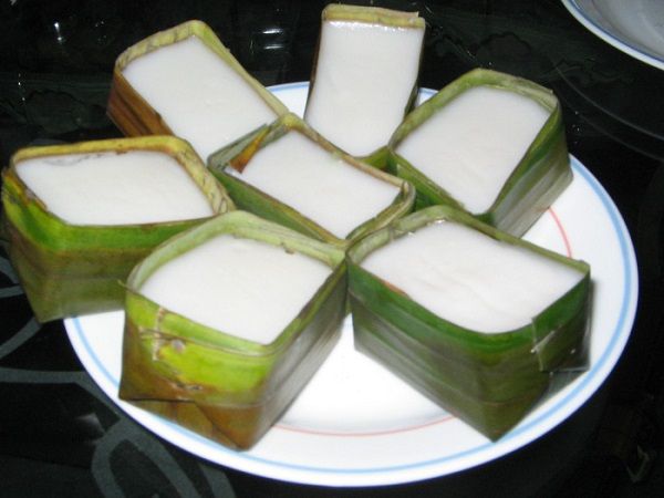 This mixture is wrapped in banana leaves and then steamed or grilled.
