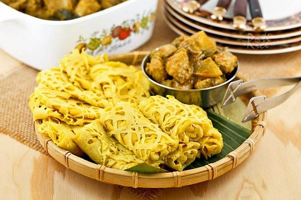 This is a type of double-layered pancake made from wheat flour, coconut milk, turmeric powder, eggs, and salt, with a surface resembling a thin net. It is often served as a breakfast dish.