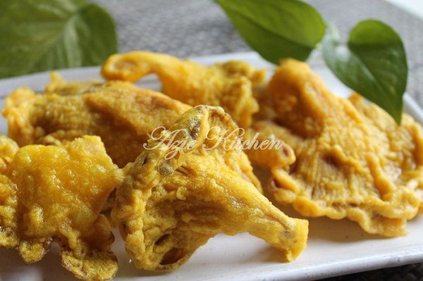 Cendawan goring is a dish of fried mushrooms seasoned with pepper, chili, or grilled meat, often served as an appetizer or snack.