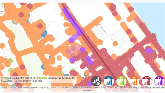Bước 2: Tại đây, sử dụng con lăn chuột để phóng to bản đồ và theo dõi vòng tròn màu sắc để xác định, màu tím là nơi có sóng 5G đó.