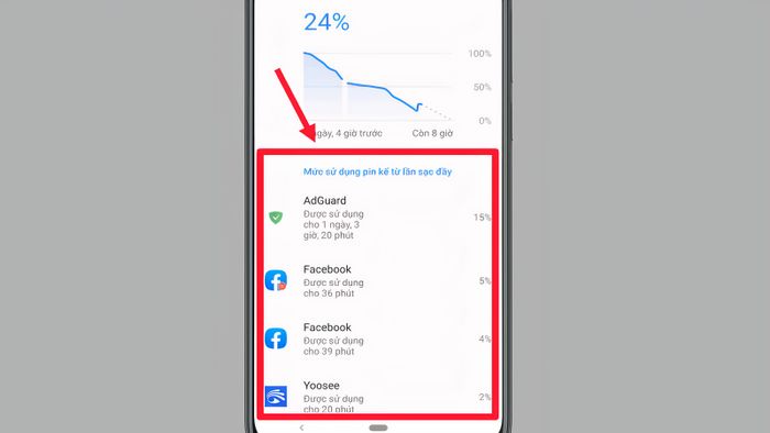 Bước 4: Kiểm tra mức độ tiêu thụ pin của các ứng dụng đang chạy ngầm và gỡ bỏ nếu không cần thiết.
