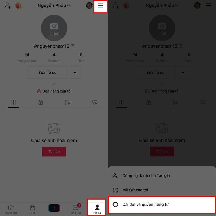 Trên ứng dụng TikTok, việc sử dụng xác minh hai bước giúp ngăn chặn bất kỳ ai đăng nhập từ các thiết bị không quen thuộc. Ứng dụng sẽ gửi mã xác nhận cho bạn để xác nhận danh tính của bạn. Để kích hoạt xác minh hai bước cho tài khoản TikTok, bạn chỉ cần truy cập vào trang cá nhân > chọn biểu tượng menu 3 gạch ngang ở góc trên bên phải màn hình > Cài đặt và quyền riêng tư.