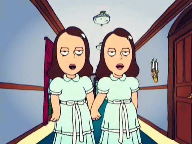 Đây được coi là một trong những đoạn phim nổi tiếng và ấn tượng nhất trong lịch sử của điện ảnh kinh dị. Là một người có khả năng đặc biệt, khi mới đến khách sạn Overlook, Danny Torrance đã chứng kiến bằng mắt hồn ma của một cặp sinh đôi xuất hiện ngoài hành lang và nói với anh: 'Hello Danny. Come play with us' (Xin chào Danny. Lại đây chơi với chúng tớ nào!).