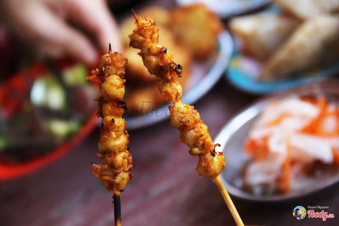 Ngồi dọc bờ biển, hít thở không khí trong lành, thưởng thức món răng mực nướng là một trải nghiệm tuyệt vời cho buổi tối. Răng mực giòn ăn kèm với đồ chua, rau răm rất ngon. Ăn món này vào ban đêm, bạn có thể ăn thoải mái mà không lo tăng cân.