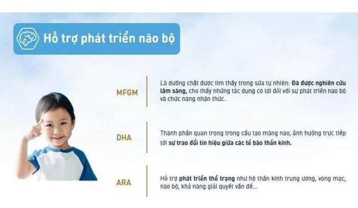 - Cải thiện sự nhận thức và phát triển trí não cùng với thể chất được hỗ trợ bởi MFGM, DHA và ARA.