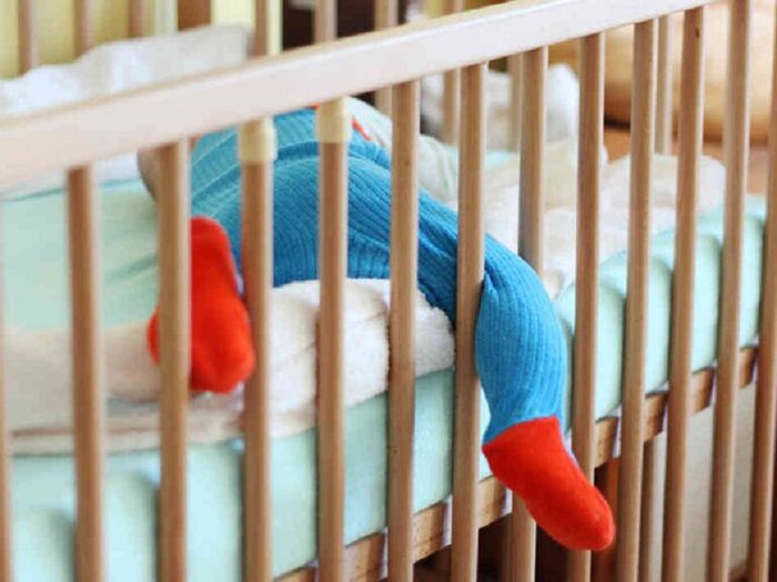 Kiểm tra kỹ khoảng cách các thanh chắn khi chọn mua giường cũi cho bé. Nếu chọn nhầm cũi có khoảng cách quá rộng, cần chèn thêm vải giữa các thanh chắn hoặc mua thêm đệm quây cũi để bọc xung quanh đảm bảo an toàn cho bé khi ngủ và chơi.