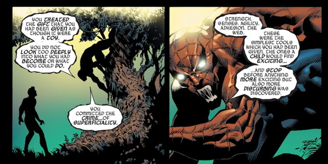 Mặc dù sức mạnh của Peter có thể được giải thích bằng khoa học, nhưng có một phần ma thuật trong các khả năng đặc biệt của anh. Trong bộ truyện 'The Other,' có thể thấy rằng có một tầng lớp sâu hơn những gì khoa học có thể giải thích. Cơ thể của Peter luôn thay đổi và có sức mạnh mới - gần với nhện hơn - và đã ban cho anh nhiều sức mạnh ma thuật. Một ví dụ là khả năng sử dụng tơ sinh học thay vì máy bắn tơ như những phiên bản khác.