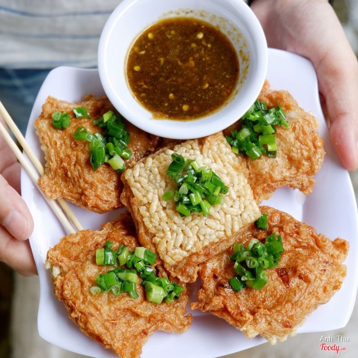 Chả cá được ướp gia vị thật vừa miệng, tạo nên sự kết hợp hoàn hảo giữa sự giòn tan của cơm cháy và độ dai của chả cá. Đặc biệt khi thêm miếng nước mắm cay đặc biệt của quán, món này trở nên cực kỳ ngon miệng.