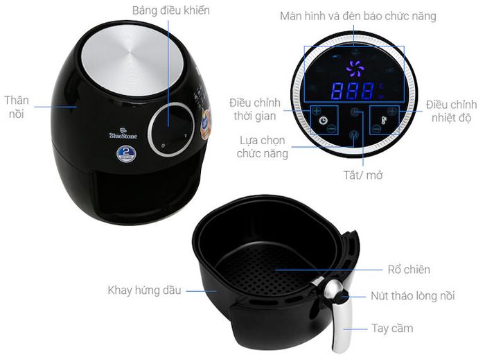 Nồi chiên không dầu BlueStone mang lại chất lượng vượt trội, phục vụ đa dạng nhu cầu với mức giá phải chăng, được đông đảo người Việt ưa chuộng.