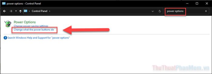 Bước 2: Nhập từ khóa Power Options vào ô tìm kiếm. Trong kết quả hiển thị, bạn hãy chọn Change what the power buttons do.