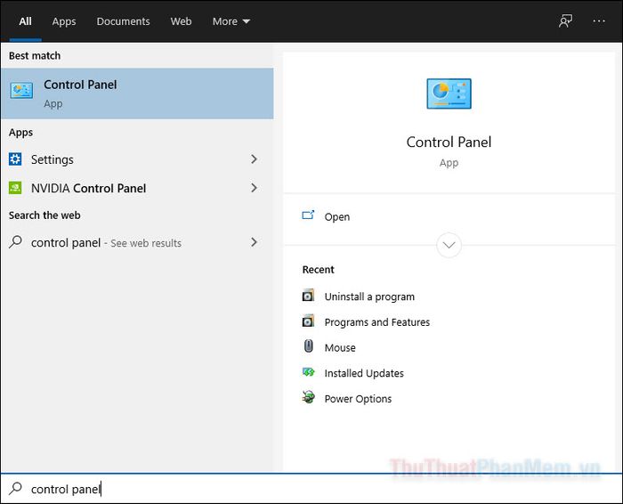 Bước 1: Tìm và mở Control Panel thông qua thanh tìm kiếm trên Windows.