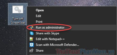 Bước 3: Chuột phải và lựa chọn Chạy với quyền quản trị. Bước này sẽ kích hoạt thần chú tắt màn hình ngay lập tức trên máy tính cá nhân của bạn.