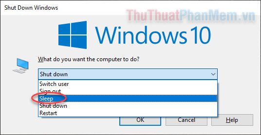 Bước 3: Trong cửa sổ tắt máy, bạn chỉ việc chọn Sleep, và màn hình sẽ ngay lập tức làm đen kín ngay trước mắt bạn.