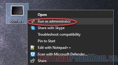 Bước 3: Chuột phải vào tệp tin doff.exe và chọn Chạy với quyền quản trị để màn hình ngay lập tức tắt. Đó là bí quyết để nhanh chóng trở lại thế giới công việc của bạn.