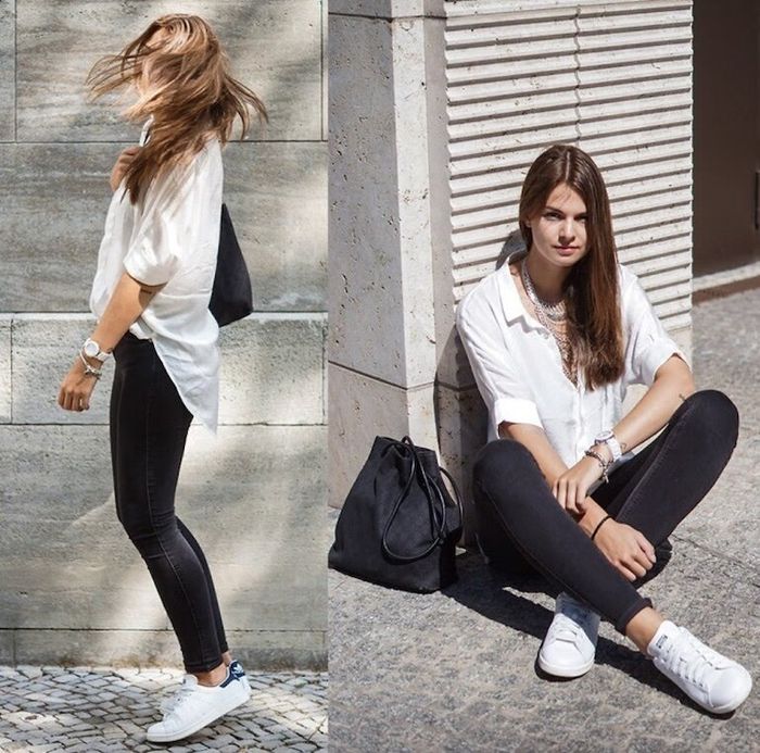 1. Sơ mi trắng kết hợp với quần jeans hoặc skinny và baggy…