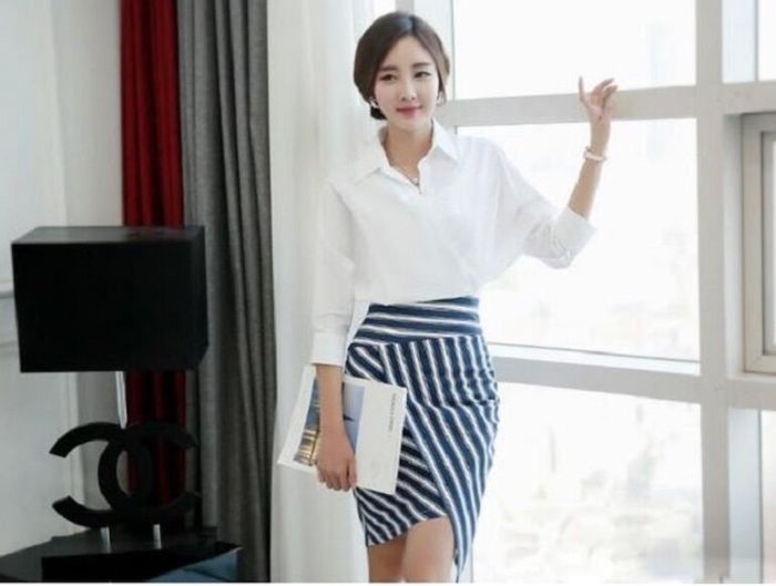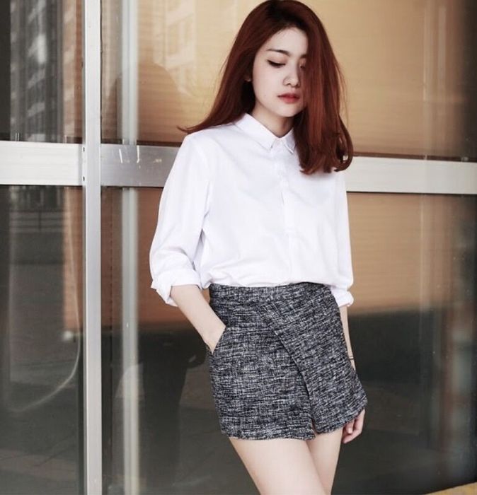 3. Sơ mi trắng kết hợp với chân váy