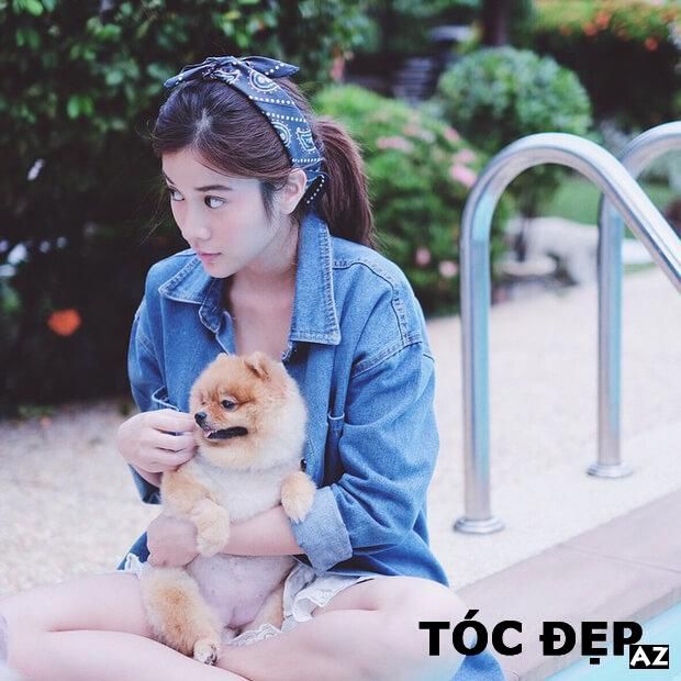 Kiểu tóc đuôi ngựa kết hợp với băng đô hoặc khăn xếp