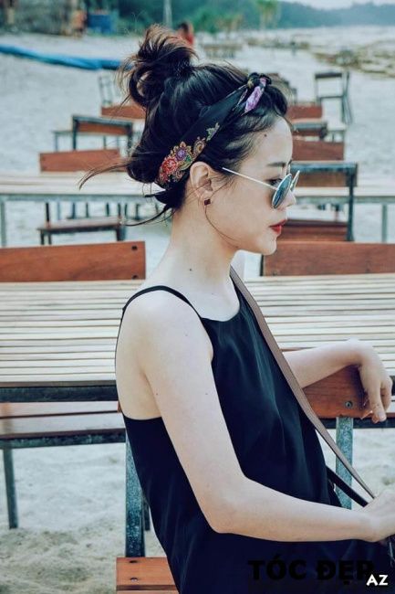 Tóc buộc hai bên phù hợp với băng đô và khăn turban