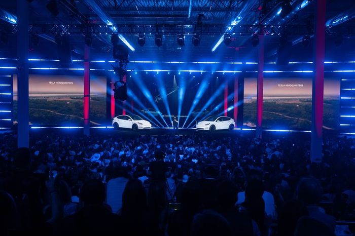 Behold the stage of the party! Credit: TeslaĐầy những trò đùa và sự tự tin, Musk đưa ra nhiều thông báo lớn. Dưới đây là tất cả những gì ông đã hứa: