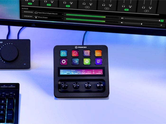 Cuối cùng, có Stream Deck+ ($200). Đây có lẽ là bảng phức tạp nhất mà Elgato đã sản xuất. Ngoài tám nút LCD có thể tùy chỉnh, nó còn có một bảng cảm ứng và bốn nút quay vật lý. Chúng có thể hữu ích để hiển thị thông tin hữu ích như mức âm lượng hoặc kiểm soát máy ảnh, nhưng những chiếc nút vặn giúp điều chỉnh những điều có thể khó khăn hơn khi sử dụng chuột, chẳng hạn như chỉnh cài đặt màu sắc trong DaVinci Resolve.