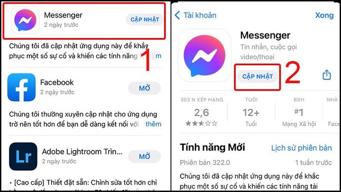 Bước 2: Mở App Store > Tìm kiếm và cài đặt lại ứng dụng Messenger > Đăng nhập vào Messenger.