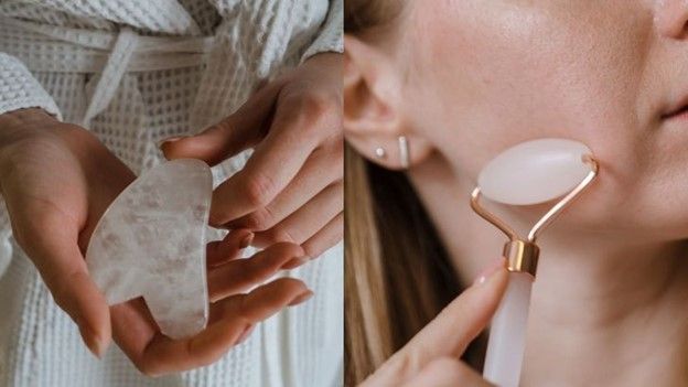 Gua sha và con lăn ngọc bích đang trở nên phổ biến trên toàn thế giới, nhận được sự quan tâm lớn. Nguồn gốc từ Trung Quốc, gua sha truyền thống được sử dụng để giảm đau cơ, đau mãn tính và giảm viêm sau khi áp dụng dầu xoa bóp. Tuy nhiên, bằng cách áp dụng áp lực nhẹ, chúng có thể được sử dụng trên khuôn mặt để cải thiện tuần hoàn máu, giảm quầng thâm và làm giãn cơ khuôn mặt. Đảm bảo vệ sinh sạch sẽ cho cả con lăn và da mặt để tránh tình trạng mụn phát sinh.