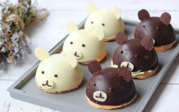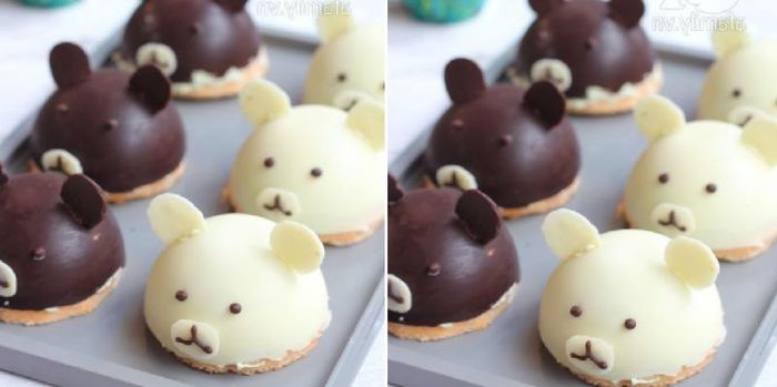 - Nhẹ nhàng lấy bánh ra khỏi khuôn, dùng sô cô la đun chảy làm keo dán lỗ mũi và hai lỗ tai để hoàn thiện chiếc bánh gấu xinh xắn và ngon miệng.