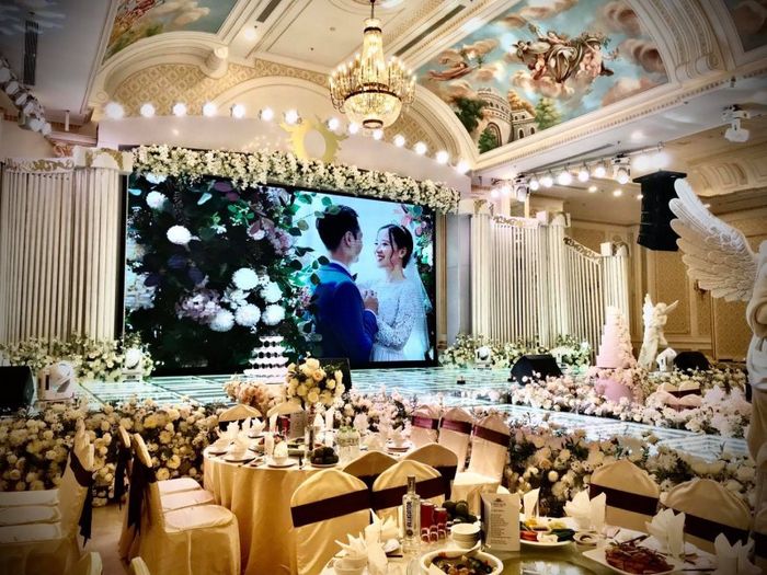 Mỗi sảnh tiệc cưới tại khách sạn được thiết kế với phong cách riêng biệt, từ cổ điển, sang trọng đến thịnh hành. Bàn ghế, sân khấu, âm thanh, ánh sáng, màn hình Led,... được đầu tư kỹ lưỡng, giúp hiện thực hóa mọi ý tưởng lễ cưới.