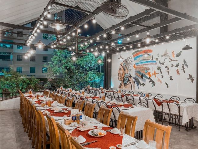 Với diện tích rộng lớn như vậy, quán có thể phục vụ đến 500 khách một cách thoải mái. Đây thực sự là địa điểm hoàn hảo cho việc tổ chức tiệc tất niên cuối năm.