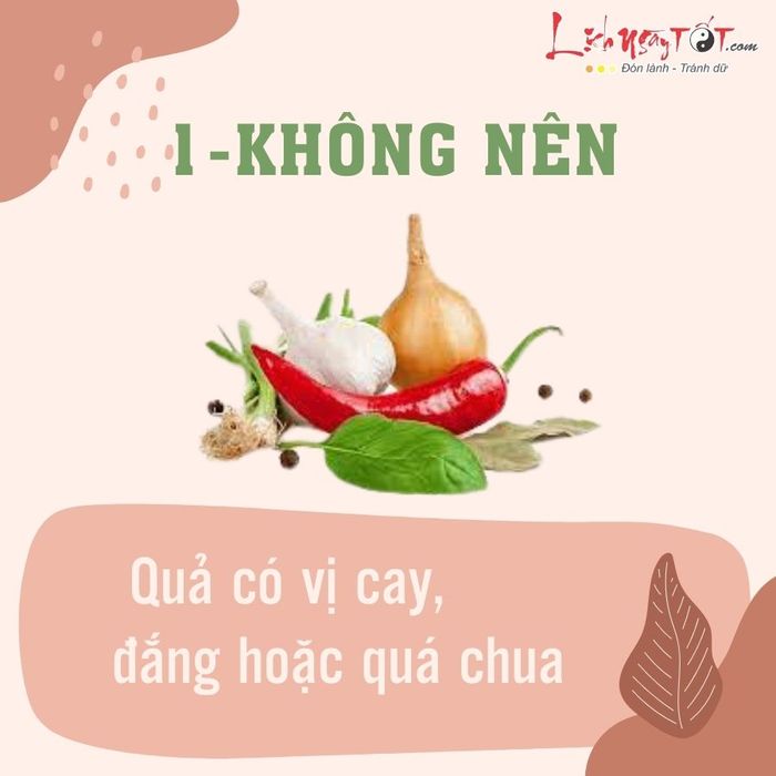 Khi cúng, hãy tránh xa những loại quả có hương vị cay, đắng hoặc quá chua. Tin ngưỡng cho rằng, 'trần sao âm vậy', việc dâng lên Thần Phật và tổ tiên những loại quả quá đắng cay là không được chấp nhận.
