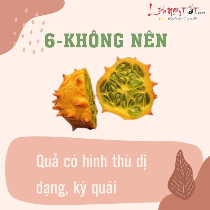 Các loại trái cây méo mó, có nhiều vết trầy xước, gai góc, quả héo, hỏng,... sẽ mang lại năng lượng tiêu cực, không thích hợp để đặt trên mâm lễ thắp hương vào ngày Tết. Đồng thời, những loại trái này cũng thể hiện sự không thành kính của con cháu đối với tổ tiên.