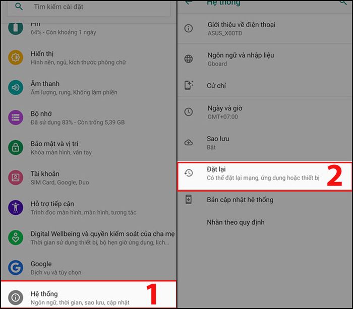 Mở cài đặt, chọn Hệ thống > Khôi phục.
