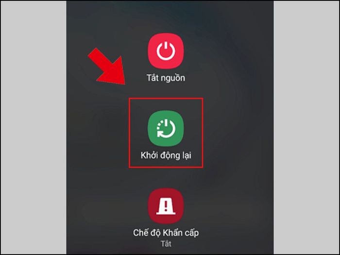 Đối với nhiều dòng điện thoại Android, bạn chỉ cần thực hiện thao tác nhấn và giữ nút nguồn cho đến khi xuất hiện thông báo. Sau đó, hãy chọn Khởi động lại.