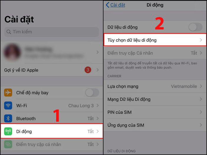 Sau khi vào cài đặt, hãy chọn Dữ liệu di động > Tùy chọn di động.