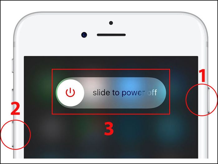 Nhấn và giữ cả nút nguồn và nút Home đồng thời > Thả khi thấy logo Apple xuất hiện > Trượt để tắt nguồn (slide to power off).