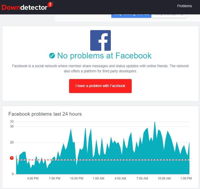 Để khắc phục, hãy kiểm tra tình trạng hoạt động của các trang web và ứng dụng trên trang Downdetector. Trang web này sẽ giúp bạn xác định xem có vấn đề gì đó đang xảy ra.