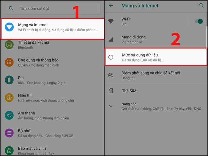 Mở cài đặt và chọn Mạng và internet > Mức sử dụng dữ liệu.