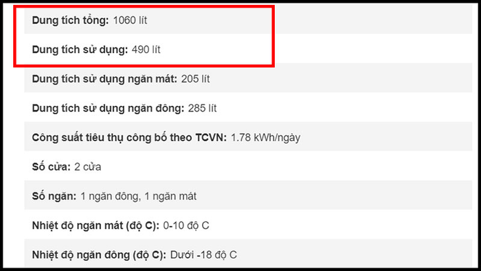 Lưu ý: Dung tích của tủ đông bao gồm dung tích tổng và dung tích sử dụng. Bạn cần chú ý đặc biệt đến dung tích sử dụng vì đây là phần quan trọng cho việc lưu trữ thực phẩm.