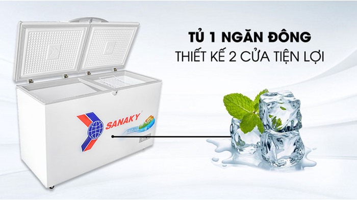 Thiết kế 2 cửa 1 ngăn đông tủ đông Sanaky 305 lít VH-4099A1