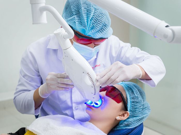 Một trong những phương pháp tiêu biểu là dịch vụ tẩy trắng răng bằng công Nghệ Bleach Bright tại nha khoa Việt Nhật. Ngoài ra, còn có nhiều địa chỉ chăm sóc răng miệng uy tín khác áp dụng phương pháp này. Gel làm trắng kết hợp với ánh sáng phù hợp giúp loại bỏ mảng bám và vệt ố vàng trên răng một cách nhanh chóng mà không gây tổn thương cho nướu lợi hay làm mòn bề mặt men răng.