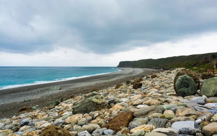 Cách trung tâm thành phố Hoa Liên khoảng 10 phút đi xe, Bãi Biển Qixingtan ấn tượng với bờ biển ôm sát vào vách núi, tạo nên bức tranh đẹp mê hồn. Với địa hình hình lưỡi liềm, Qixingtan không chỉ là bãi biển mà còn là không gian yên bình và thoáng đãng, hoàn toàn khác biệt với sự ồn ào và náo nhiệt của thành phố. Nằm giữa cảnh đẹp mênh mông, bãi biển này thu hút lượng lớn du khách hàng năm, mang đến trải nghiệm yên bình và tận hưởng vẻ đẹp của thiên nhiên.