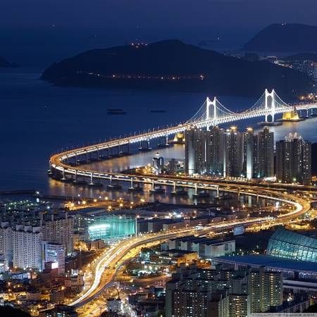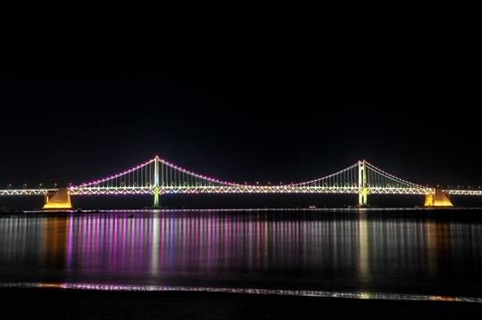Gần đó là cây cầu Gwangan rộng lớn, chỉ dành cho xe hơi. Cây cầu thu hút sự chú ý bởi hệ thống đèn có thể tạo ra hơn 100.000 màu sắc khác nhau.