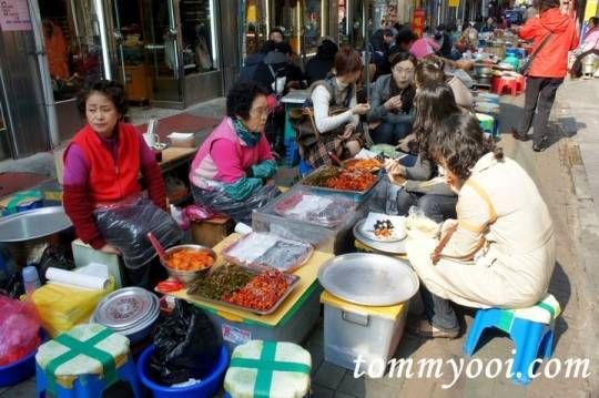 Con hẻm nhỏ này tấp nập với hàng quán ven đường. Du khách có thể thưởng thức nhiều món ngon như Chungmu kimbab (một loại cơm cuộn rong biển), bibimbab (cơm trộn với ớt, rau và thịt bò), pajeon (một loại pizza Hàn Quốc)...