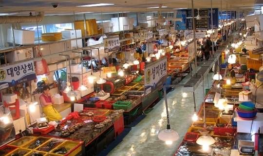 Chợ cá Jagalchi là khu chợ hải sản lớn và nổi tiếng nhất Hàn Quốc. Du khách có cơ hội thưởng thức cá sống ngay tại chợ khi tham quan.