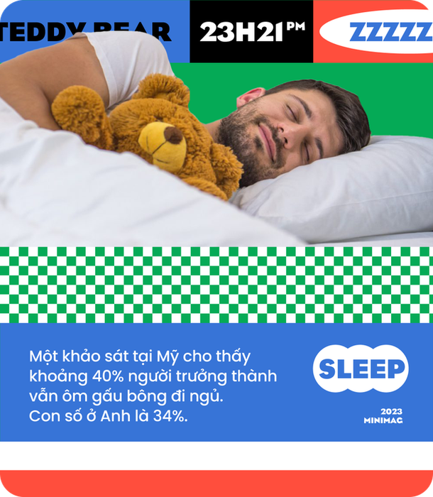 Ít khi người Việt nói về việc ôm gấu bông khi đi ngủ của mình. Nhưng theo khảo sát, khoảng 40% người trưởng thành ở Mỹ vẫn thực hiện thói quen này. Con số tương tự là 34% ở Anh. Các chuyên gia về giấc ngủ nói rằng đây là một thói quen tốt, không có gì phải xấu hổ.